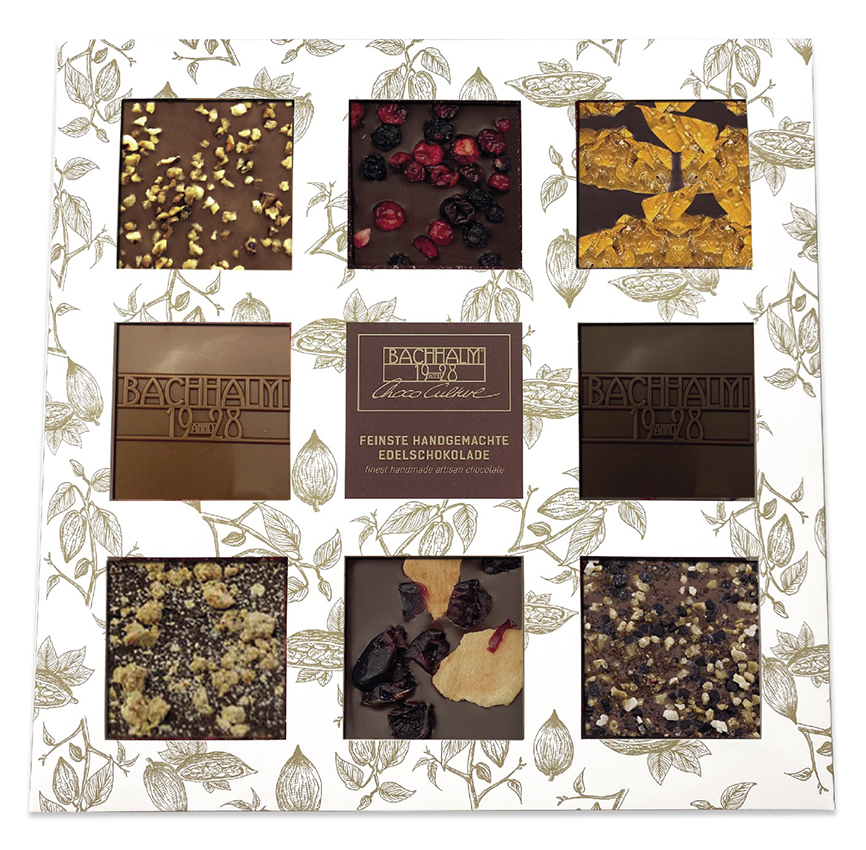Bachhalm Schokolade bildet die Basis dieser exquisiten Selection aus neun weihnachtlichen Schokoladen im Mini-Format.